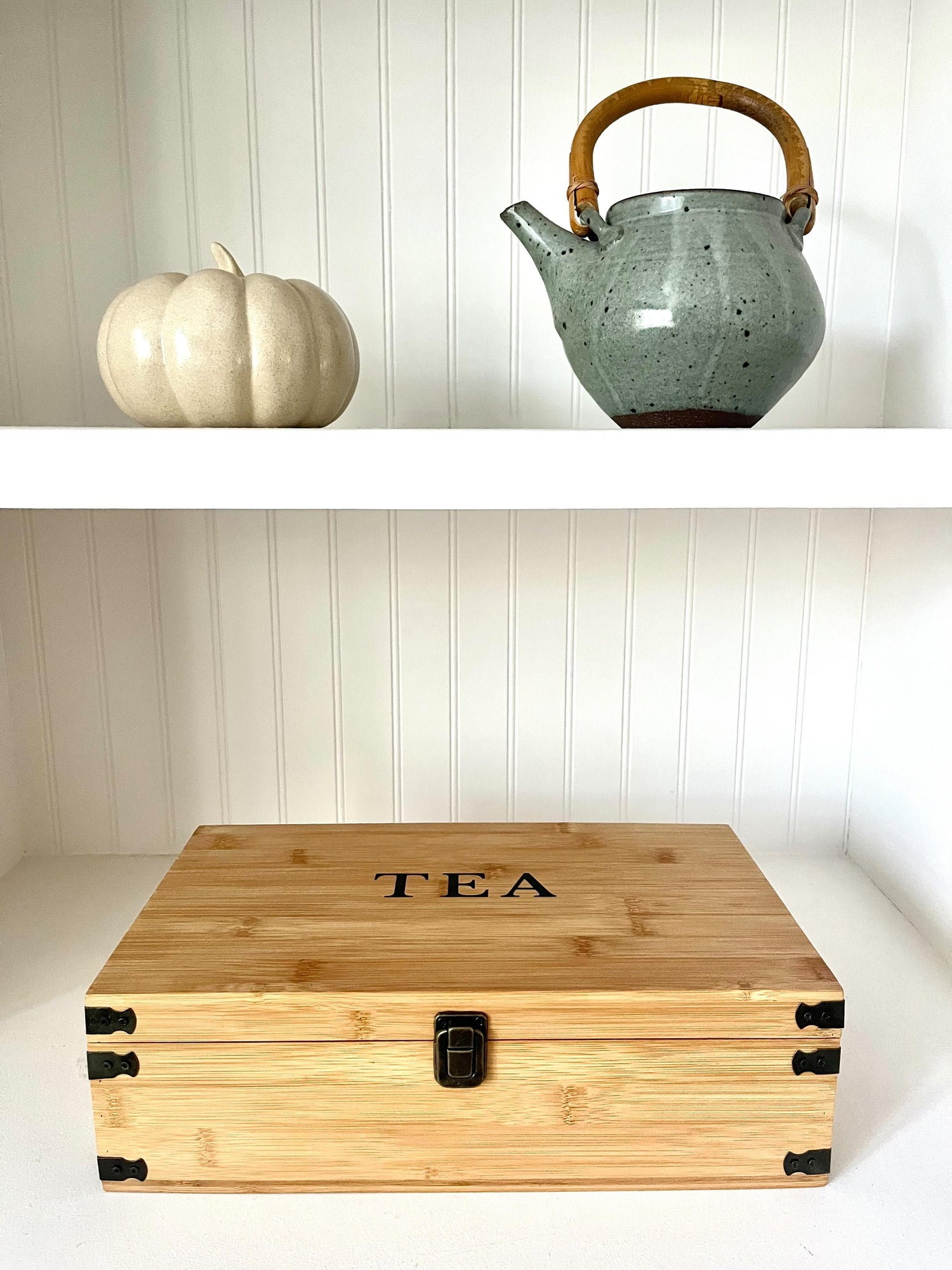 4-Slot Tea Leaf Bamboo Tea Organizer Box