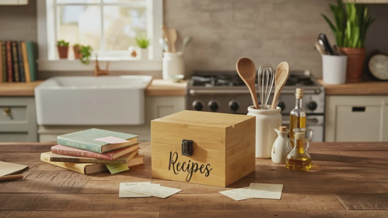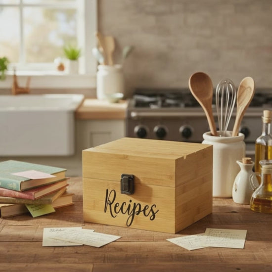 ✅ AT LAST, PREMIUM QUALITY YOU CAN ACTUALLY TRUST! +When it comes to our family recipe boxes we firmly believe there's no room for cutting corners. That's why we make a point of using nothing but gorgeous, natural, sustainable bamboo wood — known for its beautiful and strong feeling — as well as heavy duty clasp and hinges, careful handcrafting techniques, and strict quality control!